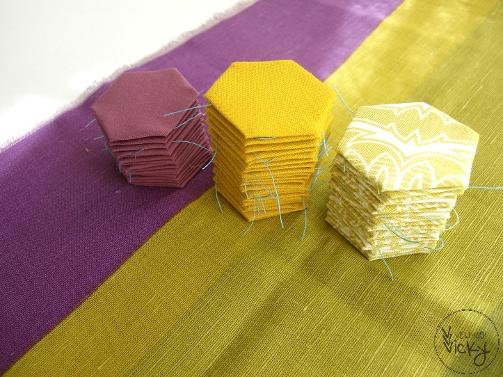 Anyways, there’s the option to sew along with Sewvivor, whilst the remaining 5 contestants are working on the real deal. I thought to hop on the train with the current Hexie challenge. I’ve been meaning to make another modern hexies project at any rate – something small that would not lead to a world map again.