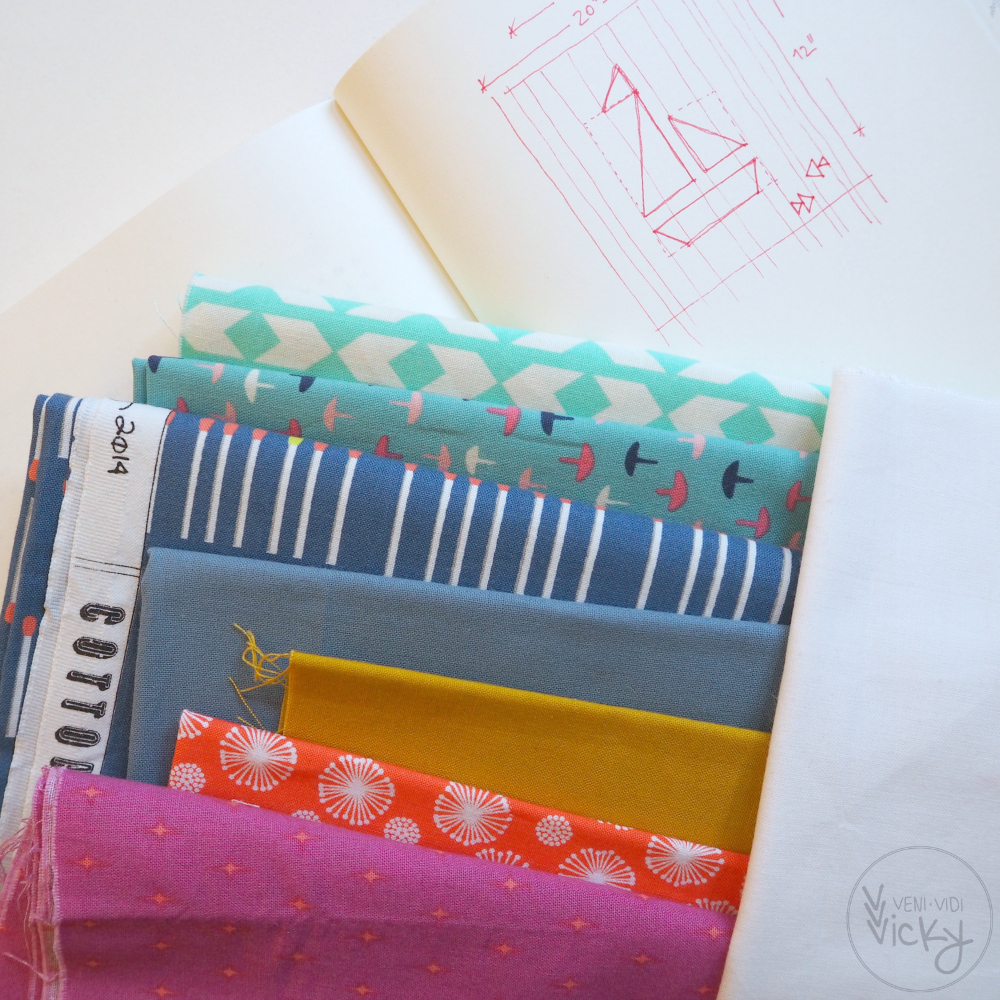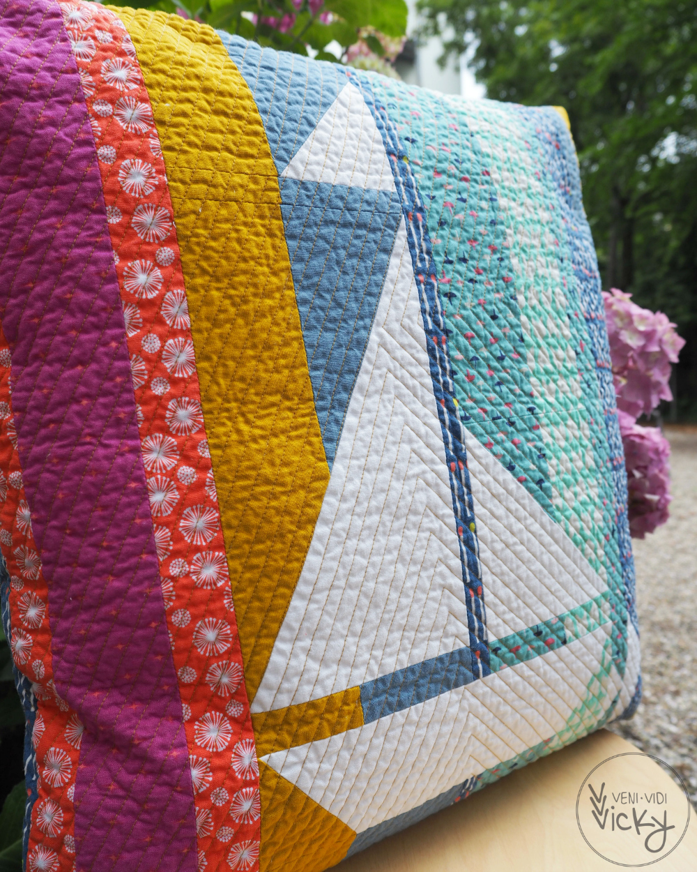 The SAIL / STARS pillow was a gift to one of my best friends. She is a serious lover of colour, so that was my starting point. I toyed with some ideas and tossed them all before I remembered her love for everything nautical. From there things went quick. After a simple sketch and rough measurements I sewed a sailboat up as a I went. No pattern, little math. Probably not the most economical way when it comes to fabric usage, but it was fun to do it this way.