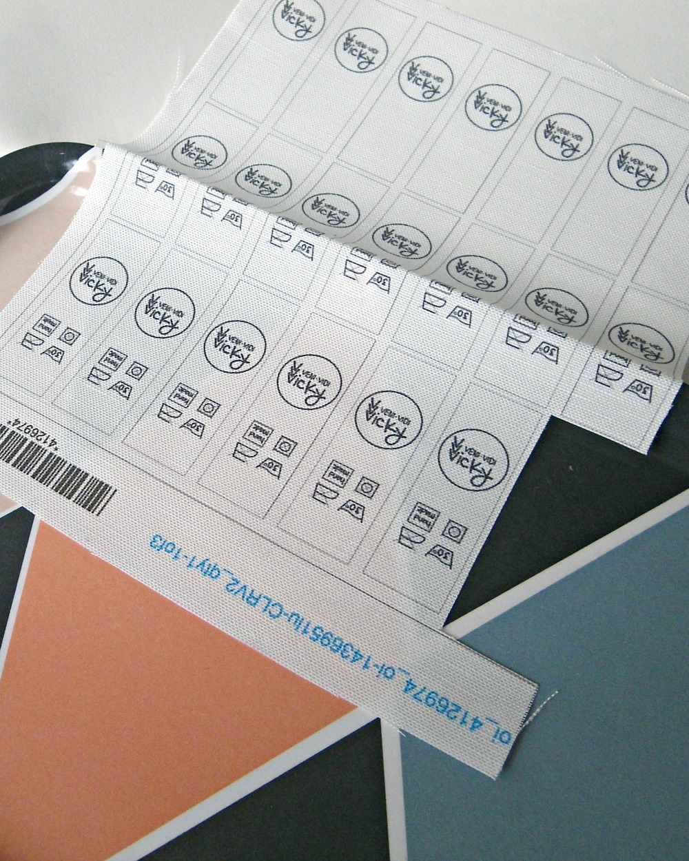 Maybe you’re like me and have been meaning to get personal sewing tags for a long time? After some research I found I couldn’t justify ordering 500 at a time or spending a fortune on a small amount with an uneconomic ratio. Since I had my logo ready, all that I needed was someone to print it on the right textile for me. The layout and even the cutting I could do myself.
