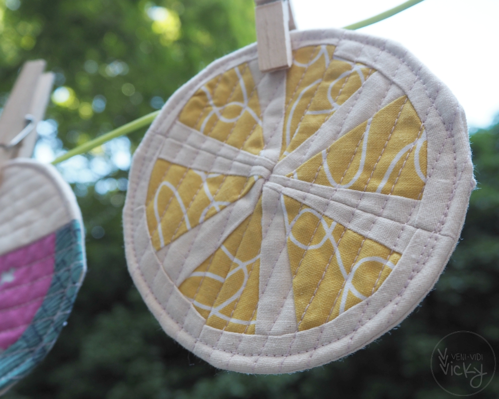 Was für ein tolles, herrliches Sommerprojekt! :-) Die kleinen Untersetzer würden sich prima auf unserem Gartentisch machen. Zitrone, Orange, Melone – allesamt so schön. ♥ Liebe Grüße, Katharina