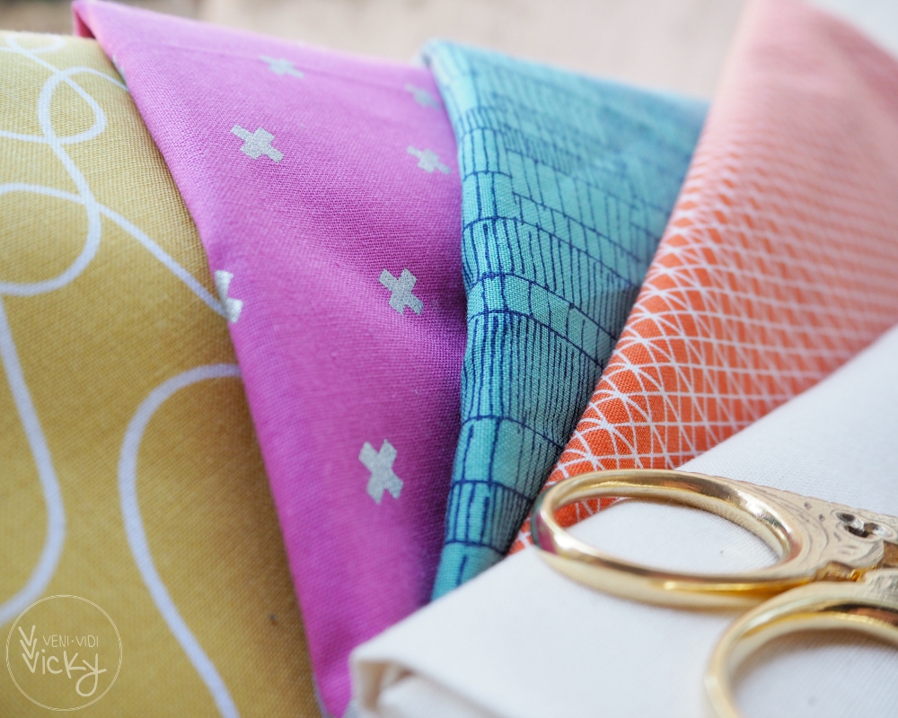 * Stoff in pink, orange und zitronengelb, je circa ein Fat Quarter